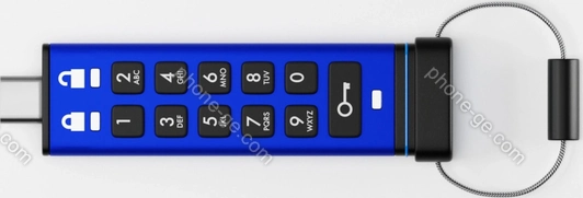 - клавиатура, 256bit AES-шифрование, FIPS 140-2 Level 3, FIPS 197, IP68 сертификат, waterproof, USB-A адаптер