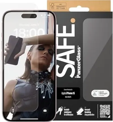 PanzerGlass Safe Screen Protector ultra wide Fit for Apple iPhone 15 — купить в интернет-магазине в Тбилиси с бесплатной доставкой по Грузии