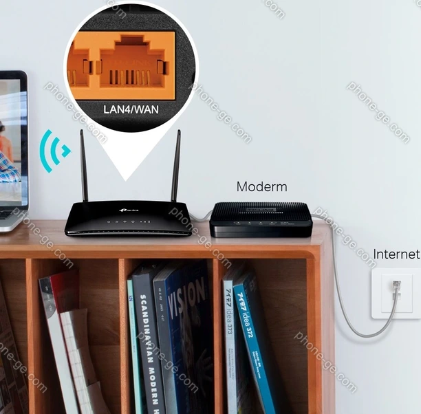 - 1x WAN общий, 4x LAN (1x общий), Wi-Fi 4 (WLAN 802.11b/g/n)