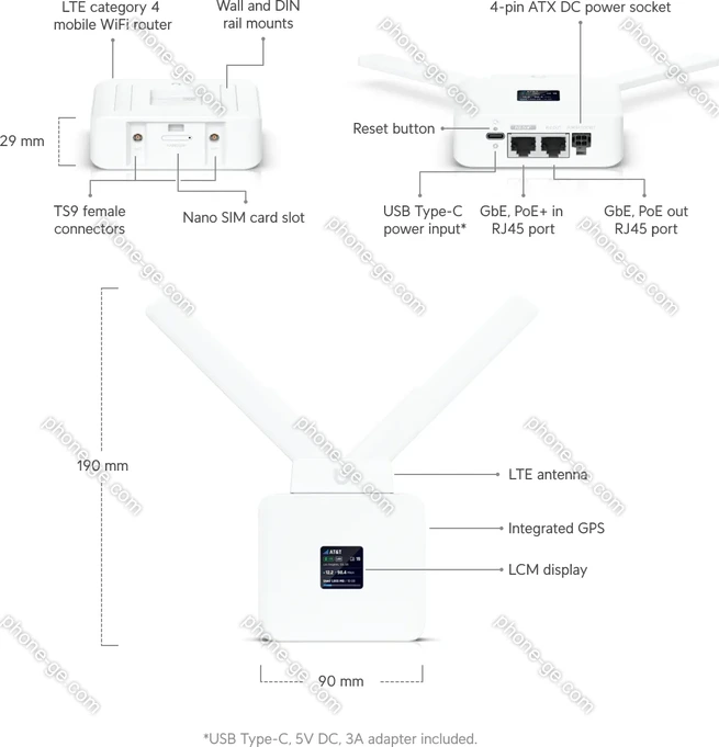 - LTE (B1/B3/B7/B8/B20/B28)