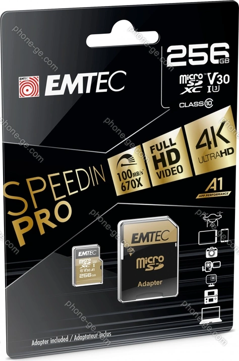 Карта памяти Emtec SpeedIN PRO R95/W85 microSDXC 256GB Kit, UHS-I U3, A1, Class 10 — купить в интернет-магазине в Тбилиси с бесплатной доставкой по Грузии