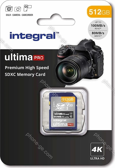 Карта памяти Integral ultima PRO R100/W80 SDXC 512GB, UHS-I U3, Class 10 — купить в интернет-магазине в Тбилиси с бесплатной доставкой по Грузии