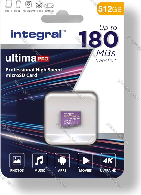 Карта памяти Integral ultima PRO R180/W150 microSDXC 512GB Kit, UHS-I U3, A2, Class 10 — купить в интернет-магазине в Тбилиси с бесплатной доставкой по Грузии