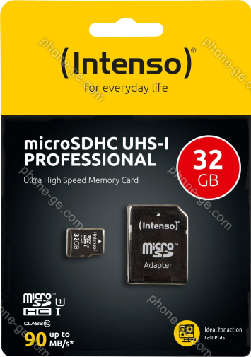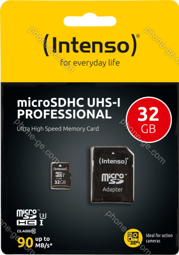 Карта памяти Intenso Professional R90 microSDHC 32GB Kit, UHS-I U1, Class 10 (3433480) — купить в интернет-магазине в Тбилиси с бесплатной доставкой по Грузии