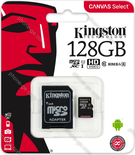 Карта памяти Kingston Canvas Select R80 microSDXC 128GB Kit, UHS-I U1, Class 10 (SDCS/128GB) — купить в интернет-магазине в Тбилиси с бесплатной доставкой по Грузии
