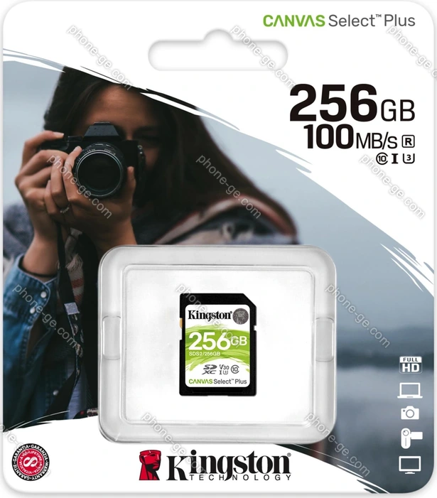 Карта памяти Kingston Canvas Select Plus Gen3 R100/W85 SDXC 256GB, UHS-I U3, Class 10 — купить в интернет-магазине в Тбилиси с бесплатной доставкой по Грузии