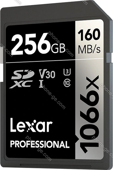 Карта памяти Lexar Professional 1066x Silver Series R160/W120 SDXC 256GB, UHS-I U3, Class 10 — купить в интернет-магазине в Тбилиси с бесплатной доставкой по Грузии