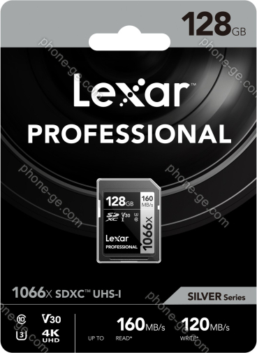 Карта памяти Lexar Professional 1066x Silver Series R160/W120 SDXC 128GB, UHS-I U3, Class 10 (LSD1066128G-BNNNG) — купить в интернет-магазине в Тбилиси с бесплатной доставкой по Грузии