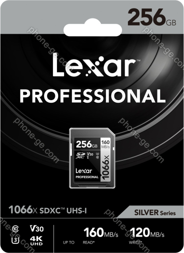 Карта памяти Lexar Professional 1066x Silver Series R160/W120 SDXC 256GB, UHS-I U3, Class 10 (LSD1066256G-BNNNG) — купить в интернет-магазине в Тбилиси с бесплатной доставкой по Грузии