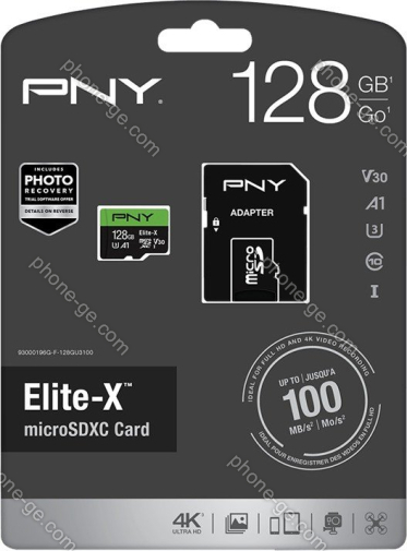 Карта памяти PNY Elite-X R100 microSDXC 128GB Kit, UHS-I U3, A1, Class 10 (P-SDU128U3100EX-GE) — купить в интернет-магазине в Тбилиси с бесплатной доставкой по Грузии