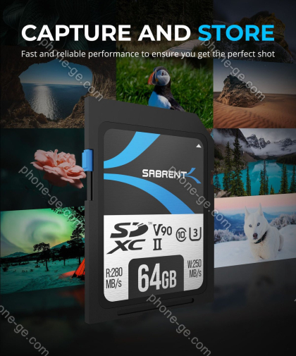 Карта памяти Sabrent Rocket V90 R280/W250 SDXC 64GB, UHS-II U3, Class 10 (SD-TL90-64GB) — купить в интернет-магазине в Тбилиси с бесплатной доставкой по Грузии
